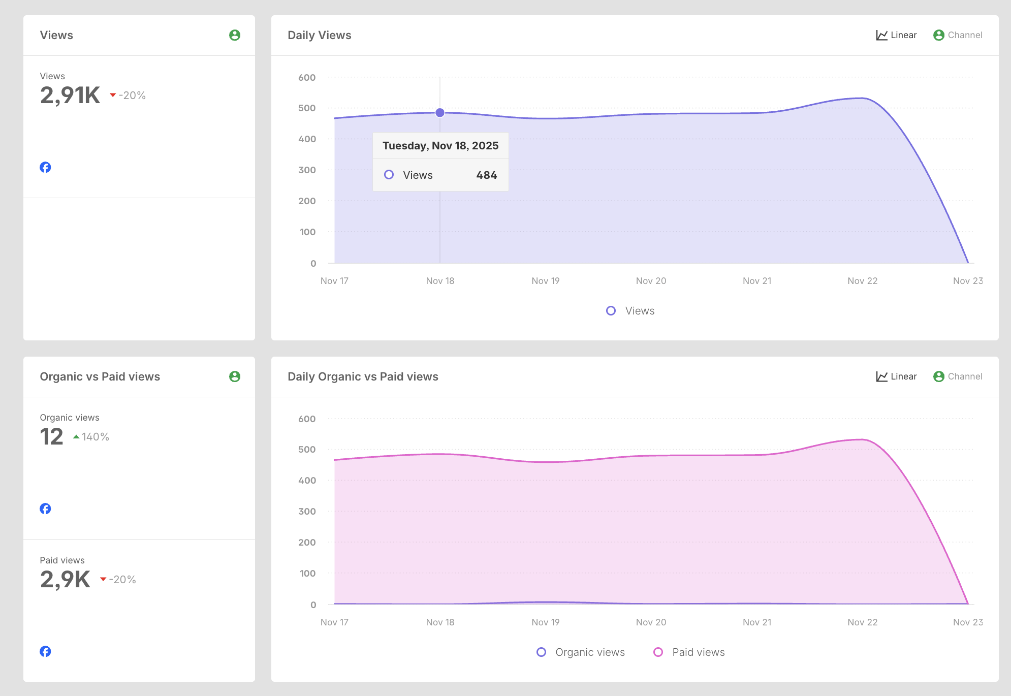 Following Meta’s changes of metrics' definitions, we’ve replaced the Facebook Impressions with the new Views metrics to align with Meta’s updates. This update has an impact on your reporting.
