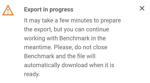 - You will see a pop-up notification in the top-right corner of Benchmark indicating that your export has begun processing, and you will receive another notification when the export has completed and downloaded to your device.